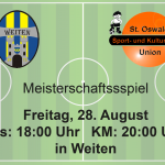 Gegner wird der SV Kleinpöchlarn sein, welcher letztens gegen Meisterkandidat Yspertal ein 3:7 erspielte.